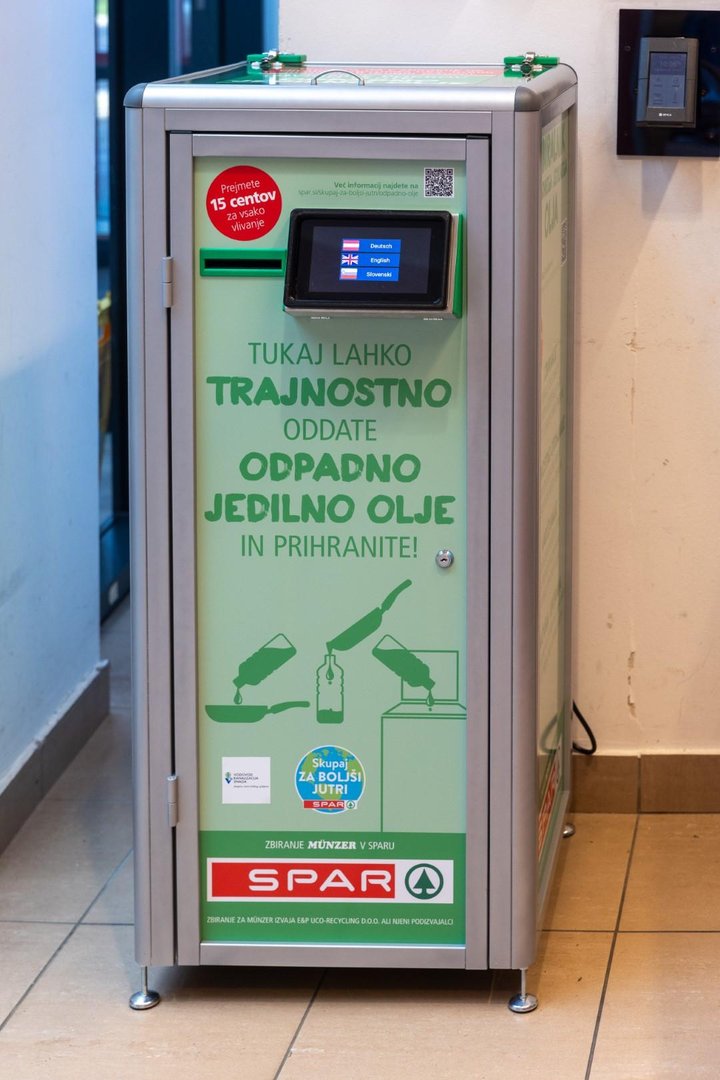 Trajnostno delovanje in odgovornost do okolja spadata med strateške usmeritve in prioritete podjetja Spar Slovenija. Njihov glavni cilj je, da svojim kupcem v trgovinah omogočajo živeti bolj trajnostno. V ta namen so že v več kot 15 trgovinah postavili zbiralnike odpadnega jedilnega olja in s tem prispevali k zmanjšanju tveganja, da bi olje končalo v odpadkih ali v okolju.