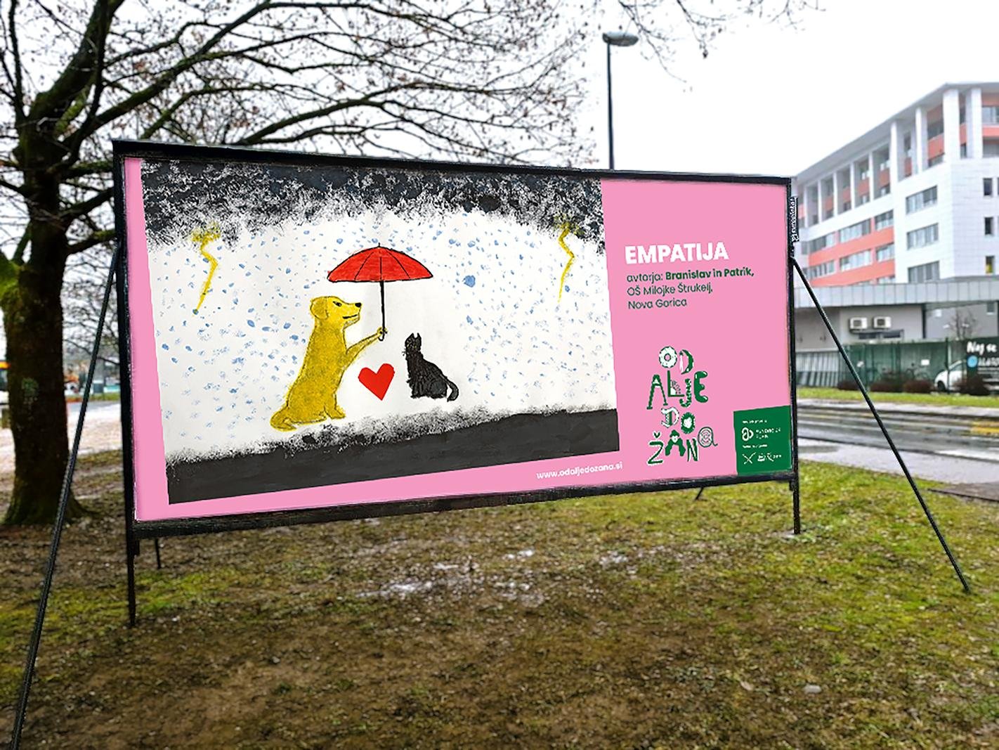 Glavna mesta po Sloveniji so preplavili plakati z otroškimi risbami, ki namesto klasičnih oglasnih sporočil izpostavljajo vrednote, kot so sočutje, prijaznost, spoštovanje in medsebojna pomoč. Kampanja je del projekta Od Alje do Žana, ki skozi otroške poglede na svet odpira vprašanje, kaj želimo kot družba poudarjati in prenašati naprej.