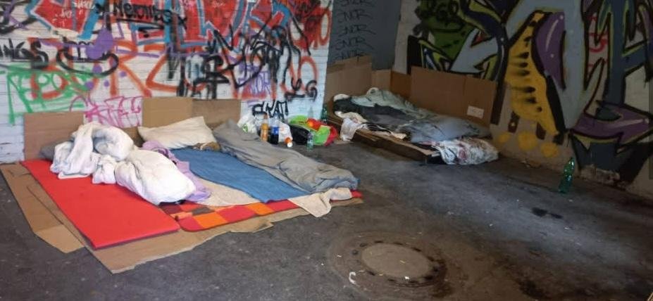 V eni izmed ljubljanskih Facebook skupin se je te dni pojavila fotografija skupine brezdomcev, ki so si v podhodu, po navedbah avtorice v Šiški pri avtobusni postaji Kompas, uredili bivališča.