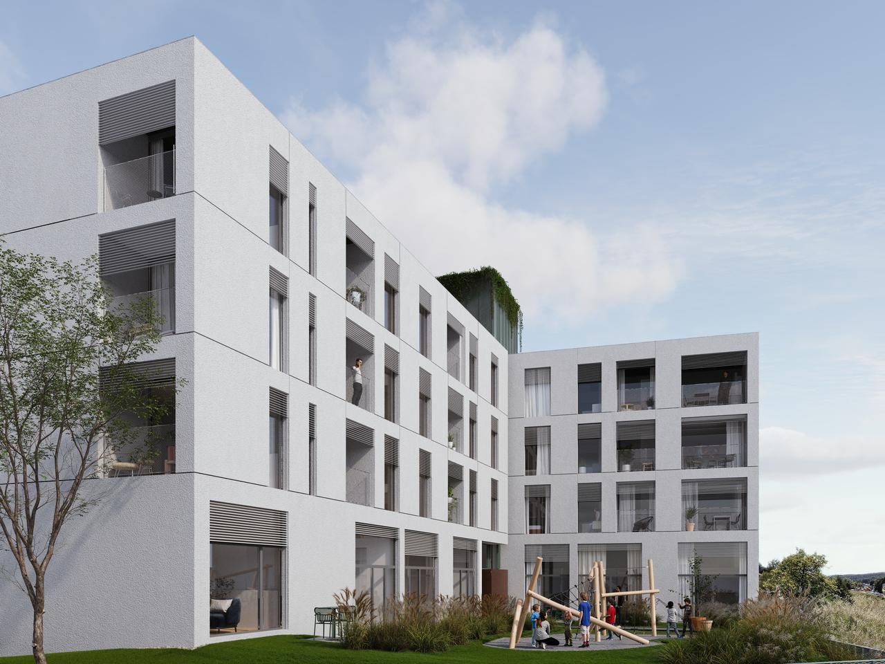 Stanovalce bosta v skupnost povezovala skupna strešna terasa, namenjena druženju in sprostitvi, ter otroško igrišče, ki bo ustvarjalo prijetno in varno okolje za mlade družine.