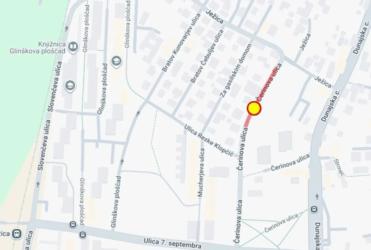 Z Mestne občine Ljubljana so sporočili, da bo zaradi urejanja kanalizacije od danes po jutranji konici do predvidoma jutri (18. april) za ves promet zaprta Čerinova ulica. Obvoz bo urejen po Ulici 7. septembra ter Dunajski cesti in Ježici. Po tej trasi bodo v času zapore vozili tudi mestni avtobusi.