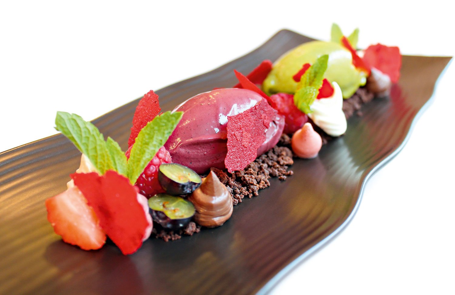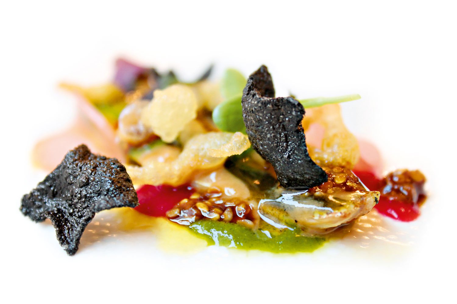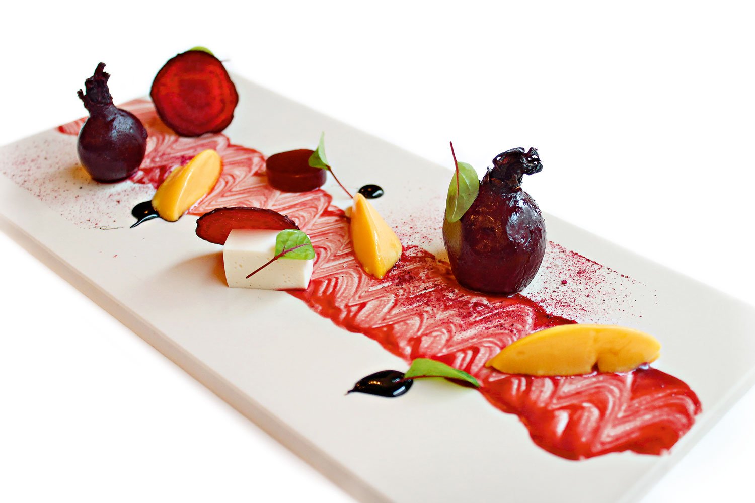 Ko se je ekipa Playboya tistega sivega novembrskega dne naslikala v pritličju Plečnikove stavbe na Miklošičevi 17, se je Janez Bratovž ravno vrnil iz Hongkonga, kjer je kuhal za 360 ljudi. Vrhunec že devete izdaje vinskega sejma z uradnim nazivom Hong Kong International Wine & Spirits Fair, katerega častna država je bila letos Slovenija, je bil gala večer, njegova zvezda pa nihče drug kot samosvoji slovenski chef. Če je zmogel to, bo še nekaj playboyevcev, smo si mislili, in imeli smo prav. Šef je bil nekoliko neprespan, a nič manj čuječ. K Še preden se nam je pridružil pri mizi, se je pred nami znašla pečena rdeča pesa s hrenovo panakoto, kremo iz kozjega sira, sorbetom iz rdeče in rumene pese, balzamično redukcijo in pesinim čipsom. Ste resno mislili, da je pesino mesto le v Etinem kozarcu? Saj je, a ta pesa je ušla pravilom. Božanska!
