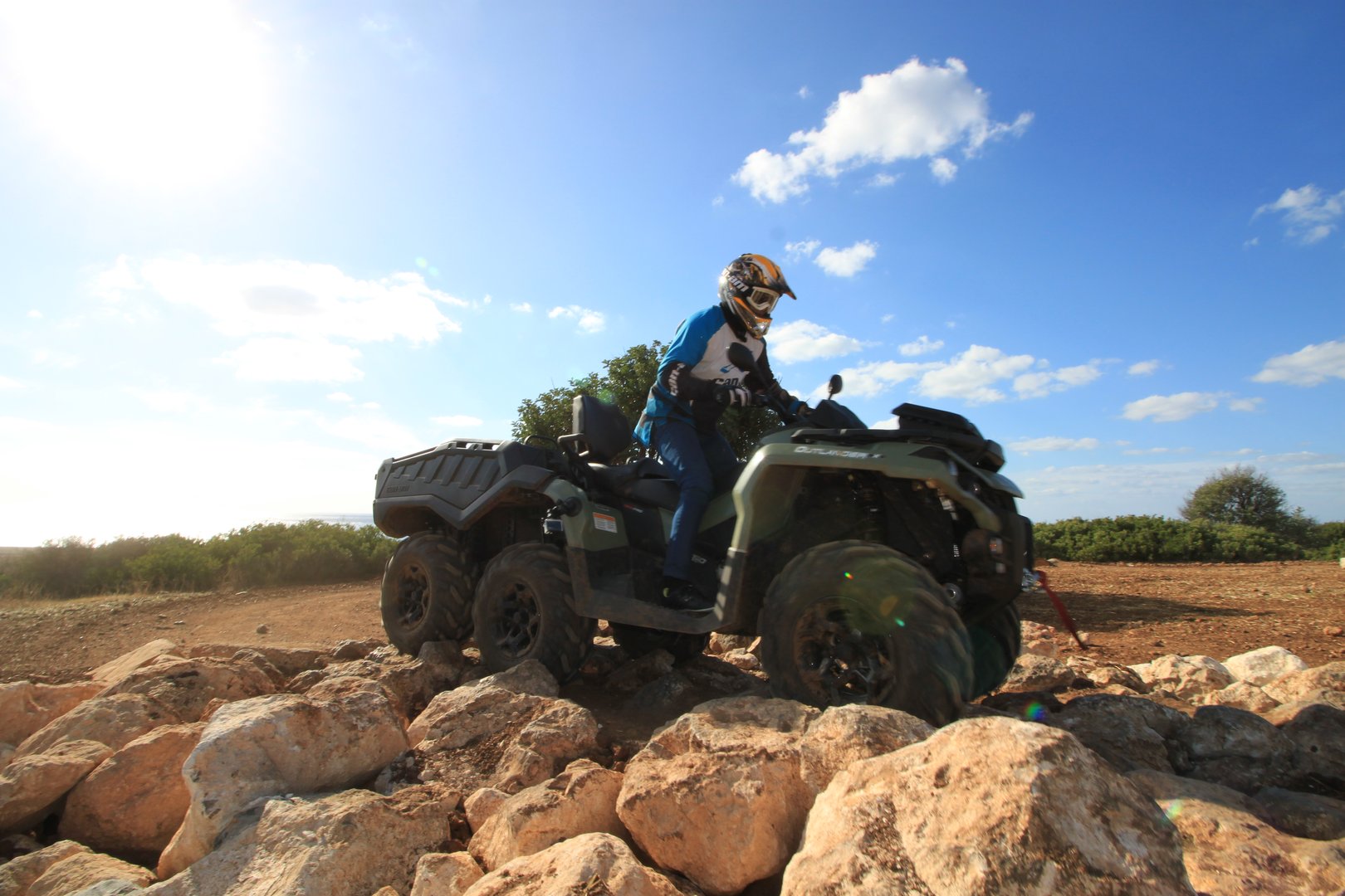 Daleč od punc v bikiniju, ki bi se lahko pretegovale po "sundecku" ali na obali, se v prahu brezpotij pišejo še skrajnejše zgodbe. In tako kot za model "X3" ni mogoče reči ali je to resen reli dirkalnik ali igračkast bugy, za njegovega manjšega ožjeg brata "traila" ni moče z gotovostjo reči ali je to štirikolesnik z volanom, sedežem in streho ali mini terenec. A takšna teoretična filozofsko tehnična vprašanja sploh niso pomembna. Pomembno je nekaj povsem drugega - praktična uporabna zabava brez omejitev.