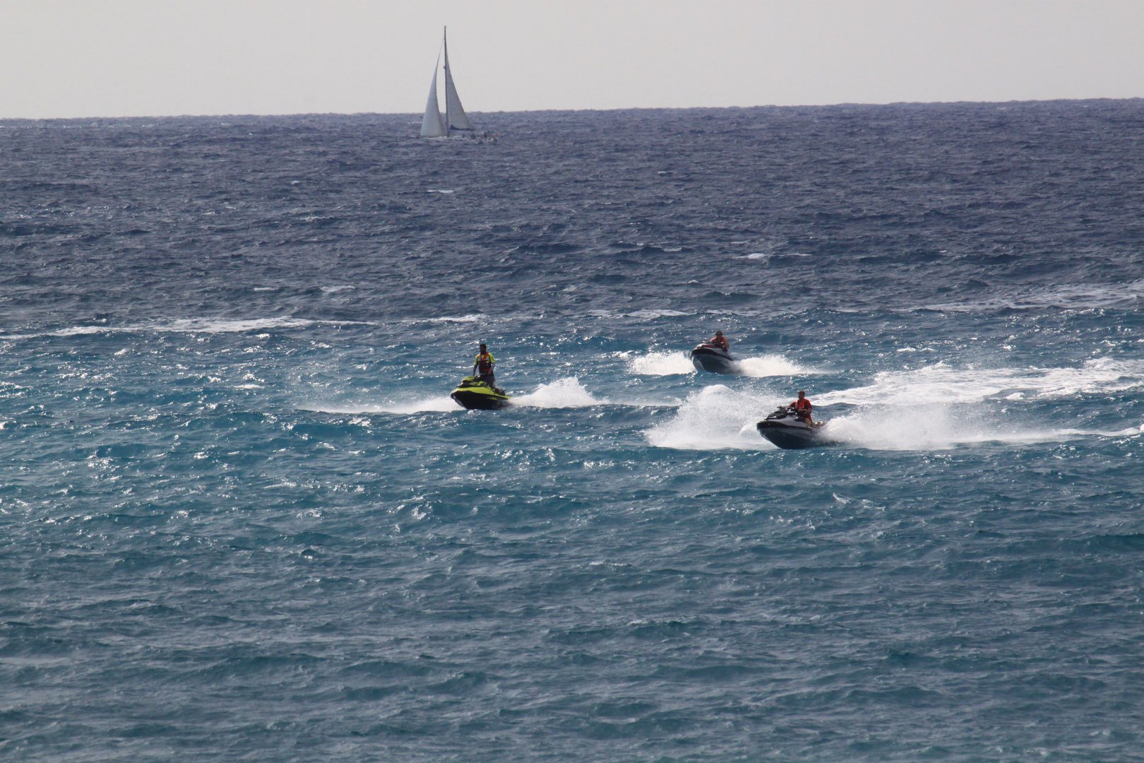 Evforija. Ali recimo drugače - količina užitka in adrenalina, samovšečnosti, pa tudi strahu, ki jo daje 300 glava horda "morskih konjičkov" zapakairanih v paket vodnega skuterja, je težko primerljiva s čemerkoli. Svoboda morskih prostranstev brez hitrostnih omejitev in predvsem nepredvidljiva razgibanost divjih valov pred nevihto v južnem Sredozemlju, odpira neko novo perspektivo v dojemanju morske zabave.