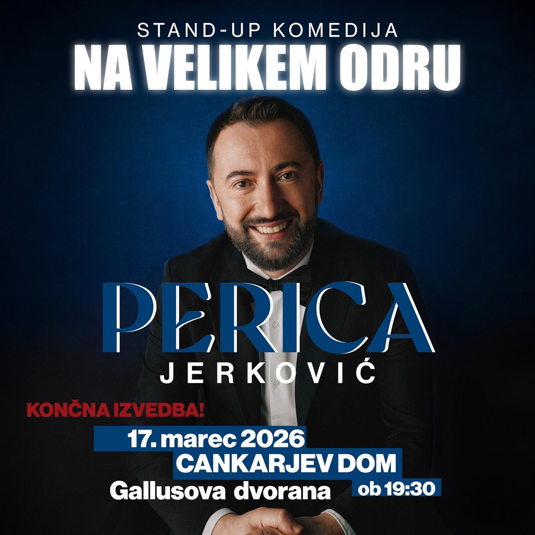 Perica Jerković, eden najvidnejših in najdlje delujočih obrazov slovenske stand up scene, bo 17. marca 2026 še zadnjič stopil na veliki oder Gallusove dvorane Cankarjevega doma s predstavo Na velikem odru.