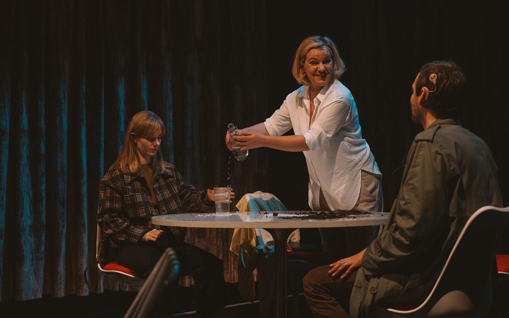 Glavni vlogi profesorja in mladega očeta sta prevzela Lotos Vincenc Šparovec in Matic Lukšič, v predstavi pa nastopajo še Mirjam Korbar, Lara Wolf k.g., Lena Hribar Škrlec, Karin Komljanec, Nataša Tič Ralijan in Gregor Gruden. Glasbo je prispevala Manca Trampuš, kostume Nika Dolgan, za oblikovanje svetlobe je poskrbel Domen Lušin in za zvok Tomaž Božič.