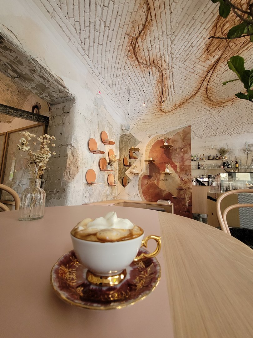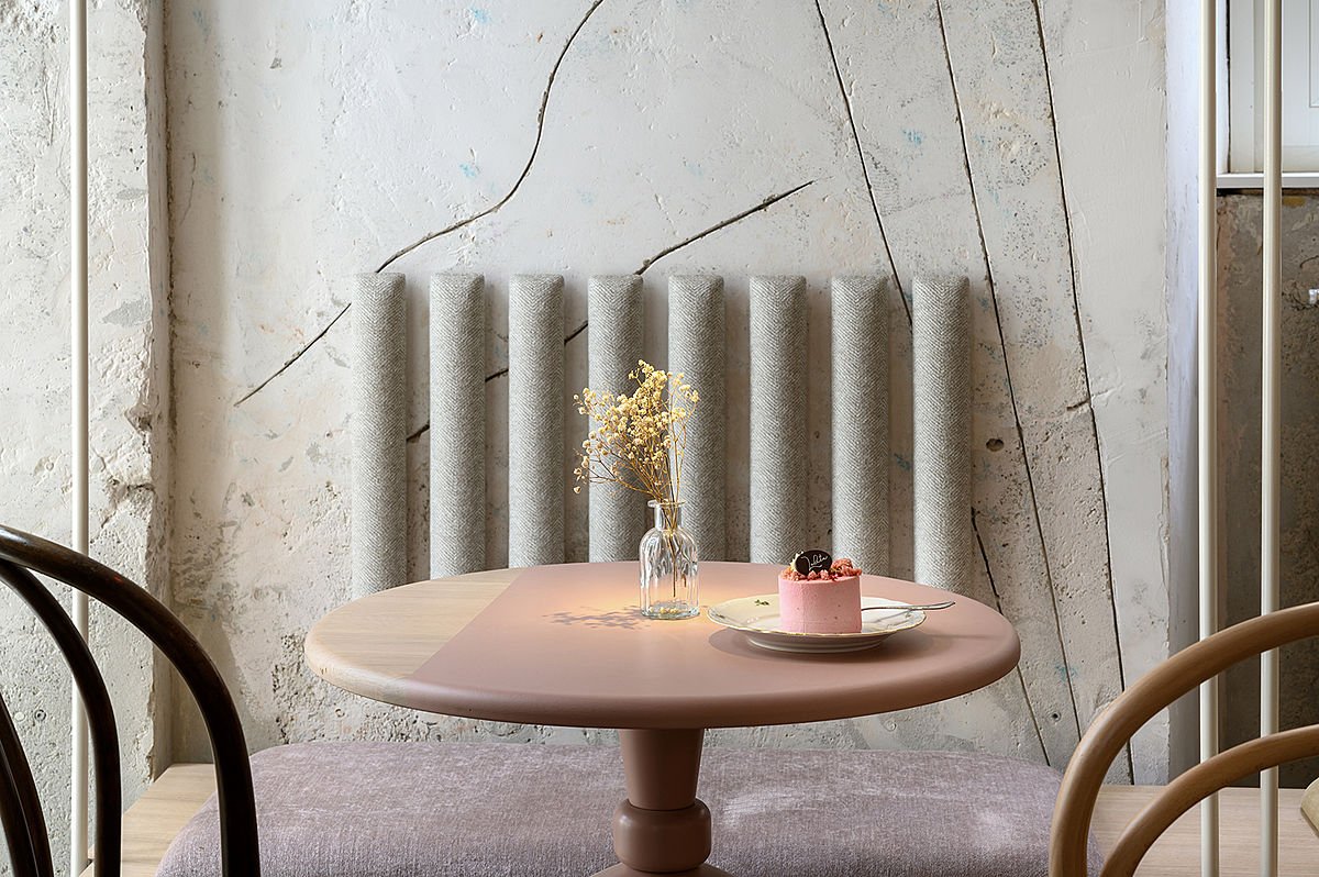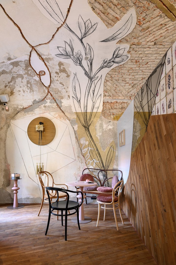 Prostor, ki so ga z izjemno tankočutnostjo in širino zasnovali v butičnem arhitekturnem biroju TRIIIJE, se igra z vsemi čutili. Gledate umetnost in vse skrivne posege, se dotaknete tekstur in tekstila, slišite diskretne zvoke glasbe, lokala in zunanjosti, zaznate vonj vroče sveže kave, okusite domač sladoled in zamižite v grižljaju izjemnih sladic.