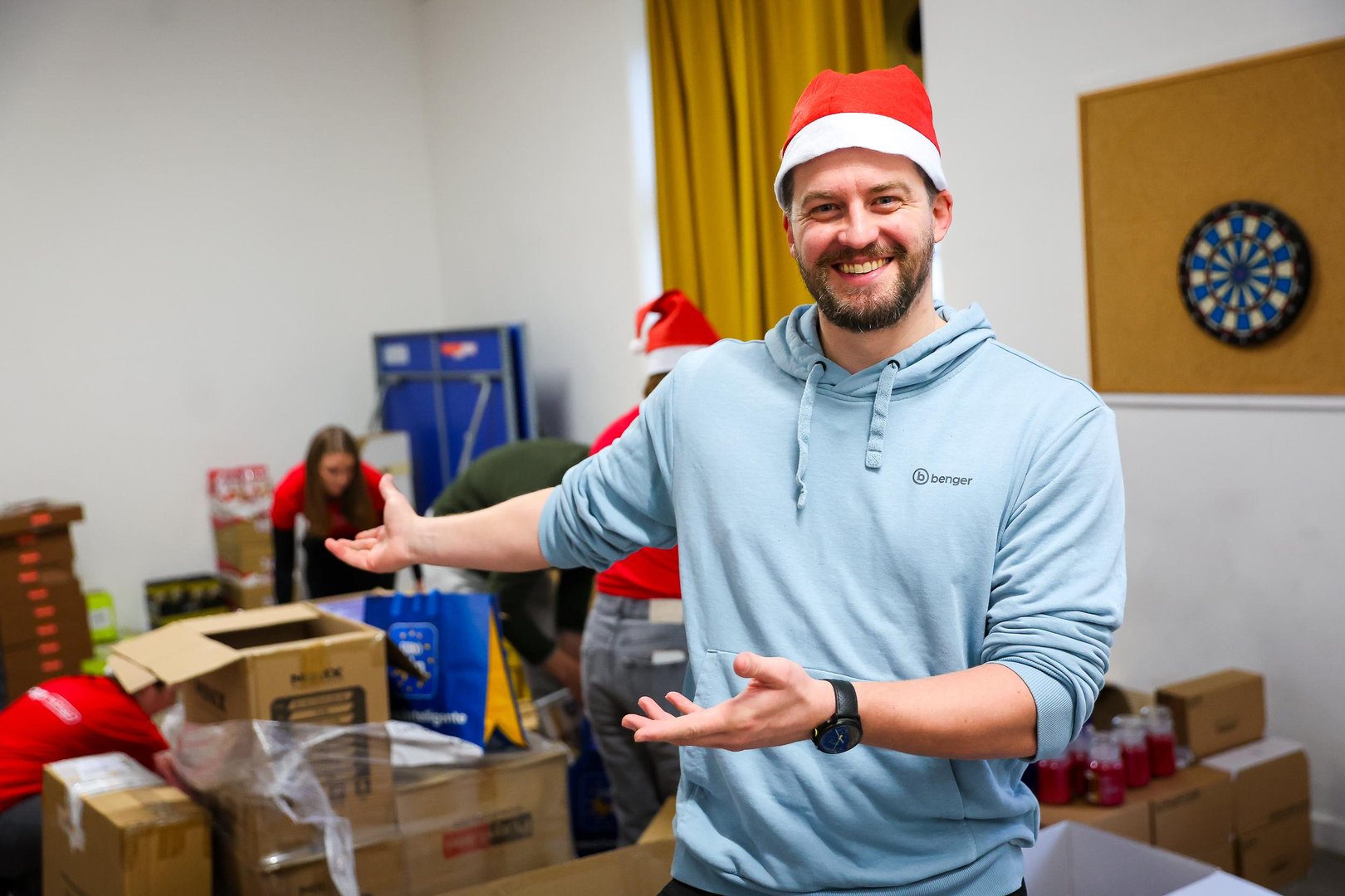 Pri pakiranju in razvažanju paketov so se zaposlenim na POP TV pridružili tudi lovci, ki so dan preživeli na Zvezi prijateljev mladine Moste-Polje. "Po navadi je naša vloga lovcev, da tekmujemo proti ljudem, zdaj pa smo stopili skupaj in delovali kot ena velika družina," je med pakiranjem povedal lovec Viktor.
