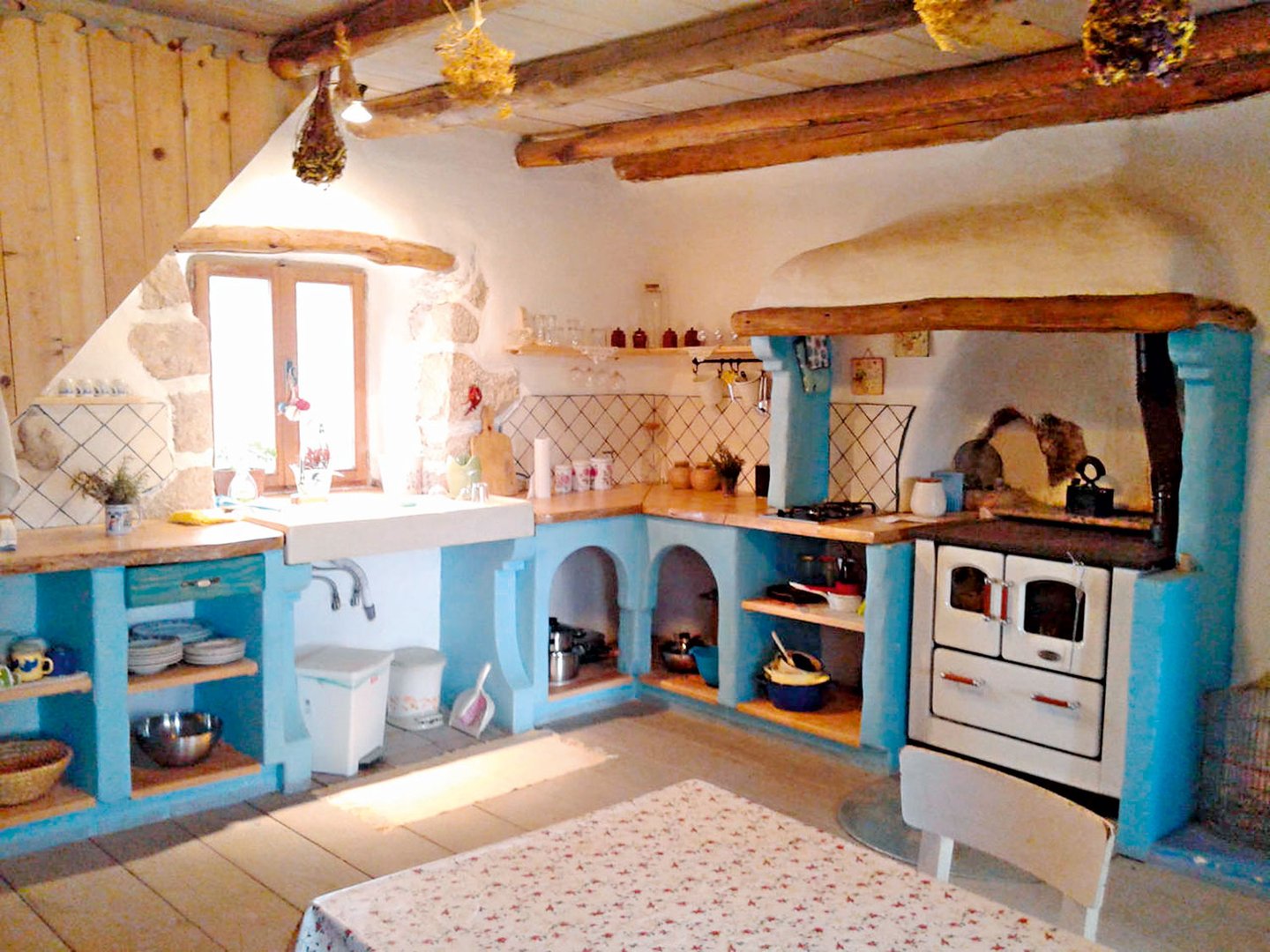 Polno je tudi zelišč in kopriv, iz katerih vam skuha odlično krepčilno juho, za posladek pa lahko dobite tudi skuto z medom. Najbolj pa boste veseli, če vam bo postrežena gregada, v katero padejo kosi rib iz bližnjega morja ali pa divji prašič oziroma jelen. Do lepe plaže, ki je spodaj na fotografiji, je tri kilometre hoda. Pri njih so pogosto nastanjeni kakšni umetniki, saj radi gostijo umetniške kolonije. Bodo pa tudi vas! Poleti lahko nastanijo 20 in pozimi 10 gostov, ki jih greje čudovito odprto ognjišče.