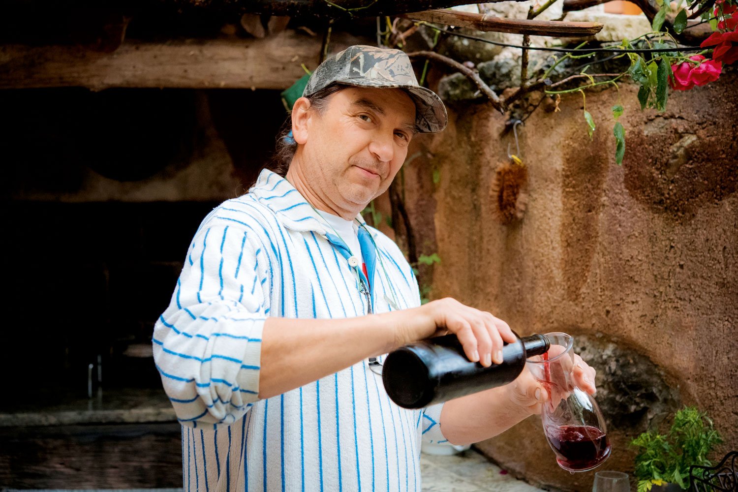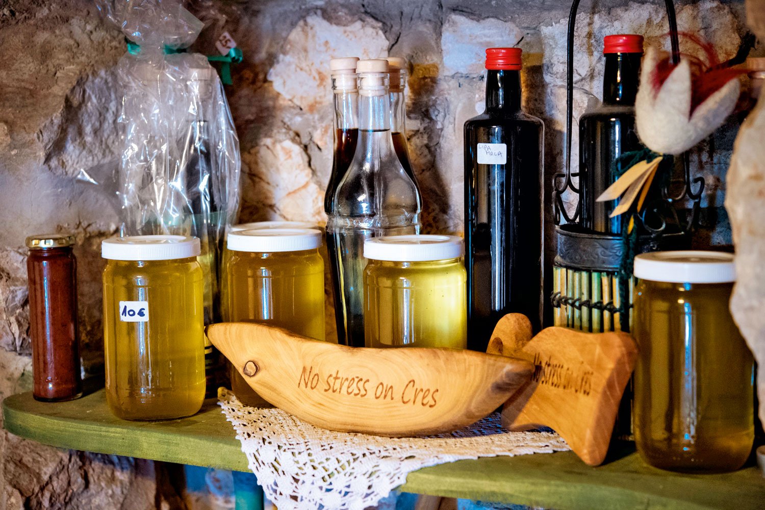 Nekoč je živel na Reki, nato se je preselil v otoško meditativno divjino in z družino ustvaril permakulturno kmetijo. Ko boste prispeli, vam bo hitro natočil kozarec domačega merlota in vam na lastnoročno umetelno izdelani deski narezal domačo divjačinsko klobaso in pršut, ki smelo visita v njegovi kleti. K temu se priležeta staran ovčji sir in ovčja salama, saj se ovce pasejo v neposredni bližini.