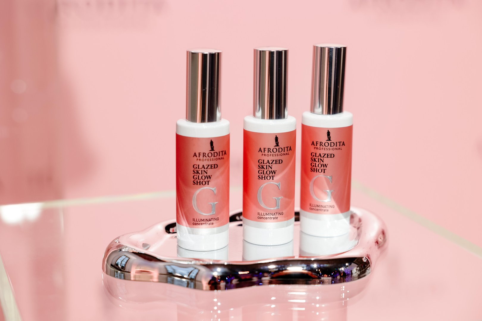 Središče pozornosti je bil Glazed Skin Glow Shot Afrodita Professional, edinstven hi-tech koncentrat s 27,5 % aktivnih učinkovin, ki prinaša popoln “glazed” efekt – sijočo, gladko in osvetljeno kožo, brez filtra in brez teže. Navdihnjen z ikoničnim korejskim trendom »steklene kože« osveži naravno lepoto kože ter ji podari zdrav, neverjetno sijoč videz že po 1. nanosu.