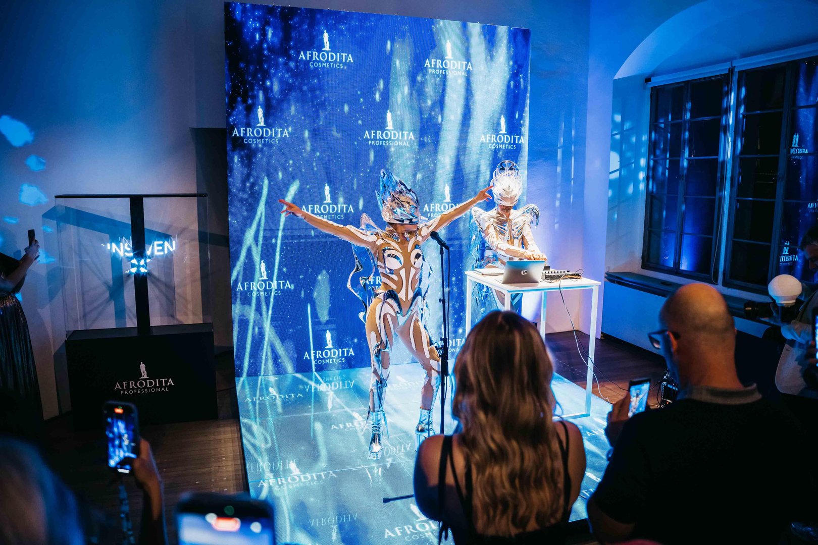 Svetlobne instalacije, hologrami in robotske roke so simbolizirali Afroditino pot – od prvih ročno izdelanih krem do naprednih serumov, ki danes postavljajo nove standarde v kozmetični industriji.