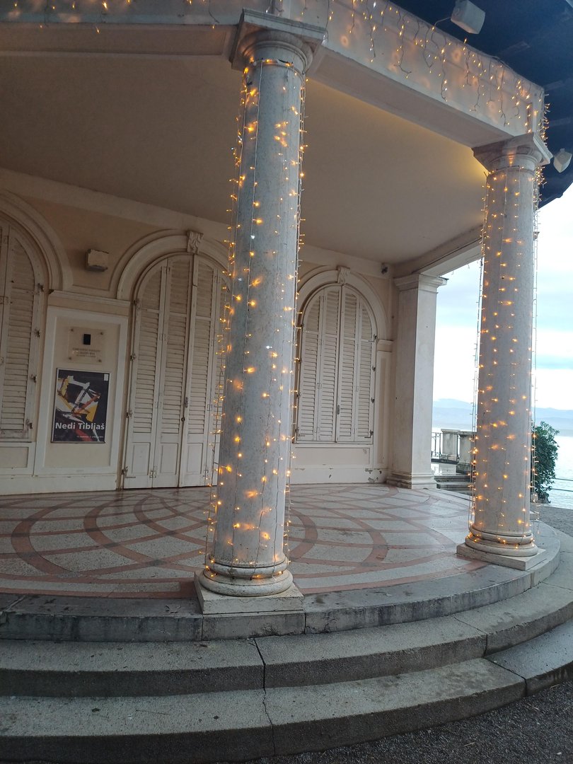 Le korak ali dva in že čisto od blizu vdihavaš morski zrak, občuduješ kulturne in zgodovinske znamenitosti, ki so v času adventa v objemu božičnih lučk še posebej čarobne, in se zabavaš v Winter Gardnu, kjer se tudi med tednom združujejo tako domačini kot obiskovalci, da pokramljajo ob prijetni glasbeni kulisi, zimskih napitkih in slastnih fritolah. No, preden se posladkate s slednjimi, vsekakor pred tem priporočam navdihujoč sprehod mimo kipa dekleta z galebom, parka Angiolina z vilo, ki jo je leta 1844 zgradil Iginio Scarpa kot simbol ljubezni do svoje žene, po kateri nosi ime, pa mimo Umetniškega paviljona Juraj Šporer in parka okoli njega, ki sta v prazničnem času videti kot prizorišče, kjer se dogajajo čudeži. Uf, in pozabila sem omeniti, kako magično je le opazovati, ko se naravna svetloba z morja zlije z vsemi temi tisočerimi lučkami mesta!